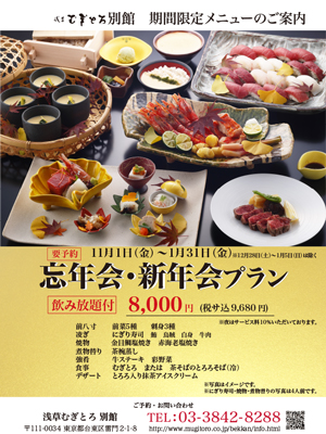 浅草むぎとろ本店1階で受付をお願いしておりますので