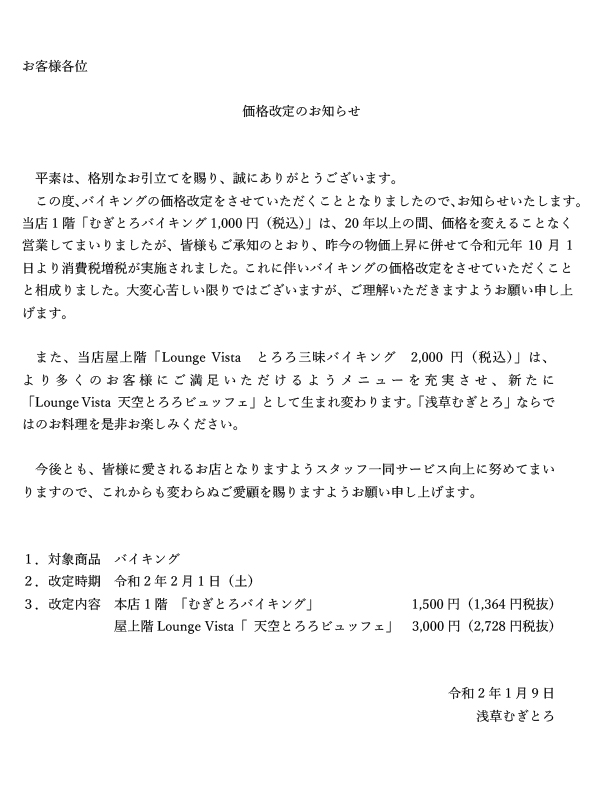 昨今の物価上昇・消費増税の影響から 1,500円(税込)に