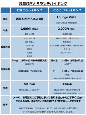 浅草むぎとろ本店1階「むぎとろバイキング1,000円(税込)は