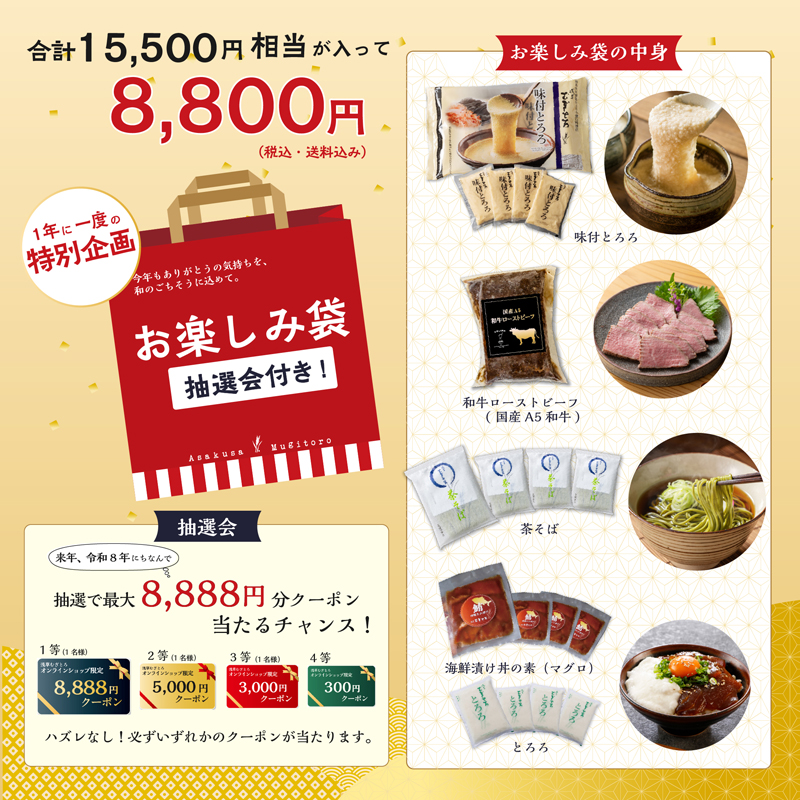 華やかな新年を、浅草むぎとろのおせちと共にお迎えいただけましたら幸いです。
