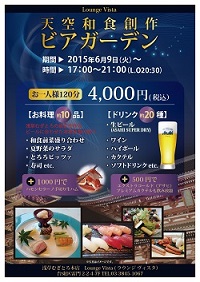 ご好評いただいております「ラウンジVista」にて開催中の「天空の和食創作ビアガーデン」ですが、